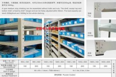 7、中型貨架采用橫梁與層板結合的結構形式;具有承重最大,蝴蝶孔設計,自由升降,安裝容易。